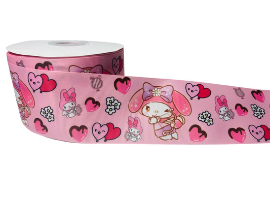 2 YARDA DE CINTA DE GROSGRAIN DE 3 PULGADA (75CM) CON DISEÑO CORAZON ROSA