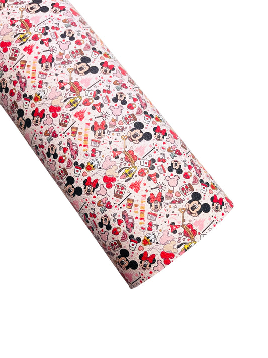 SABANA DE PIEL SINTETICA CON DISEÑO DE HK, CORAZONES Y FRESAS